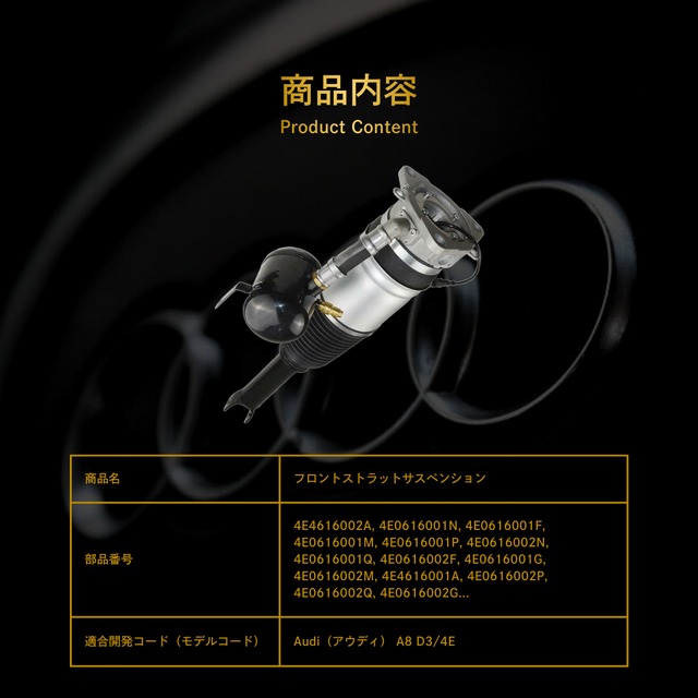 Audi(アウディ) A8 D3/4E フロントストラットサスペンション(4E0616002H, 4E0616002F, 4E0616001, 4E0616001M, 4E0616001T, 4E0616002M, 4E0616002, 4E0616001P, 4E0616001S, 4E0616002P, 4E0616001F, 4E0616001Q, 4E0616001R, 4E0616002Q, 4E0616001G, 4E0616001H, 4E0616002N, 4E0616002G)
