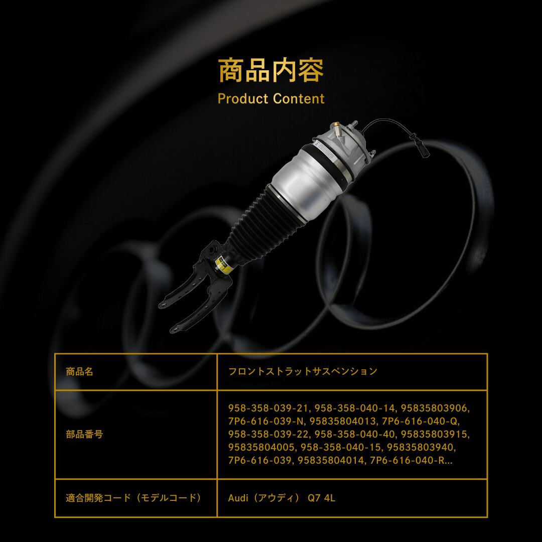 Audi(アウディ) Q7 4L フロントストラットサスペンション(7P6616040N, 7P6616040L, 7P6616039N, 7P6616039L, 7P6616040K, 7P6616039K, 7P6616039Q, 7P6616040Q, 7P6616040, 7P6616039R, 7P6616040R, 7P6616040H, 7P6616039H, 7P6616039)