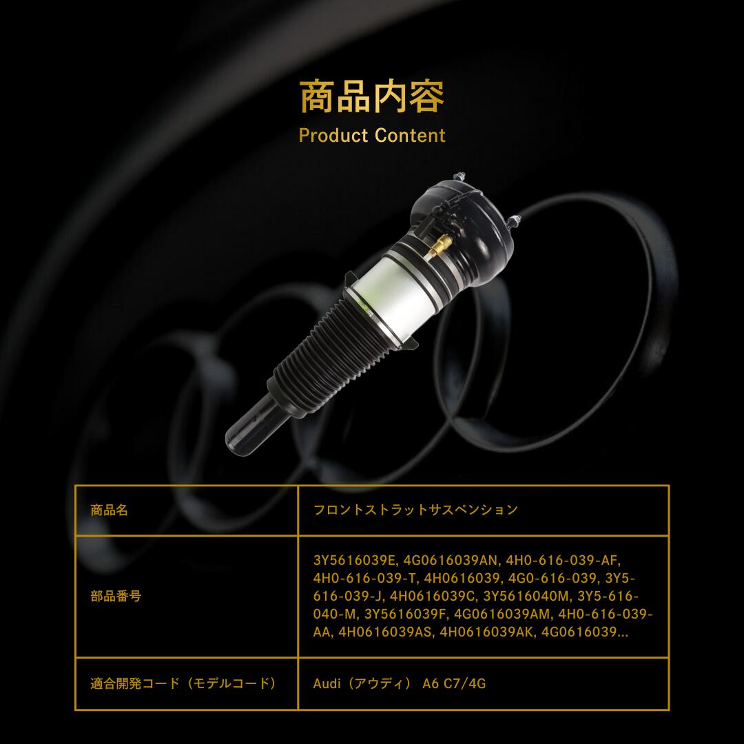 Audi(アウディ) A6 C7/4G フロントストラットサスペンション(4G0616039AD, 4H0616039H, 4H0616039AP, 4G0616039AL, 4H0616039AT, 4H0616039AC, 4G0616039AQ, 4H0616039F, 4G0616039T, 4H0616039M, 4H0616039AQ, 4G0616039AC, 4G0616039A, 4H0616039G, 4G0616039AB, 4H0616039P, 4H0616039AR)