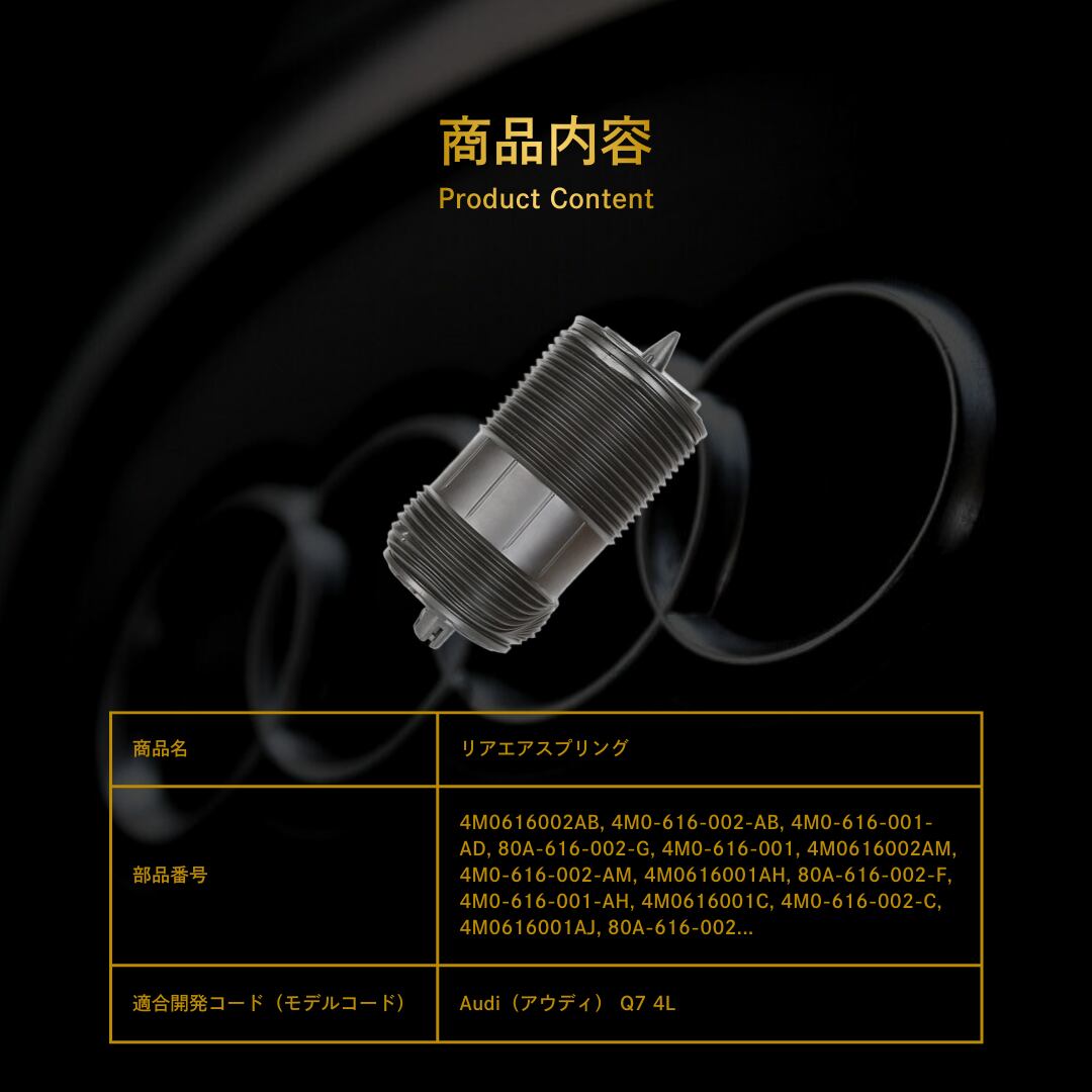 Audi(アウディ) Q7 4L リアエアスプリング(4M0616001P, 80A616001G, 4M0616001AA, 4M0616002AD, 4M0616001AK, 4M0616002A, 80A616001F, 4M0616002P, 4M0616002AK, 4M0616002, 4M0616001Q, 80A616001, 4M0616002AA, 4M0616002AH, 4M0616001A, 4M0616001AB, 4M0616002AJ, 4M0616001)