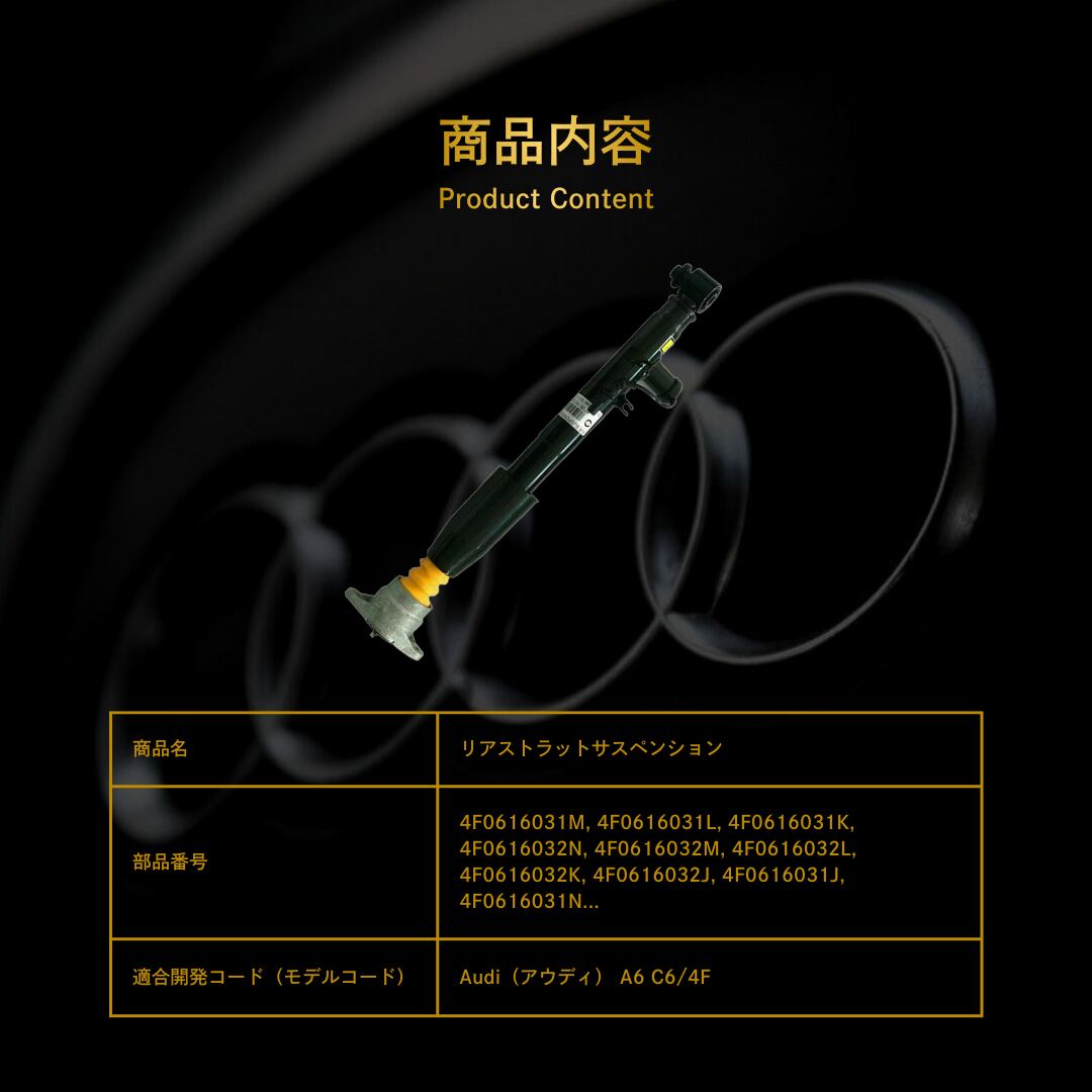 Audi(アウディ) A6 C6/4F リアストラットサスペンション(4F0616032K, 4F0616031J, 4F0616032E, 4F0616032J, 4F0616031N, 4F0616032F, 4F0616031K, 4F0616031A, 4F0616031L, 4F0616032N, 4F0616031D, 4F0616031M, 4F0616031E, 4F0616032A, 4F0616032L, 4F0616031F, 4F0616032D, 4F0616032M)
