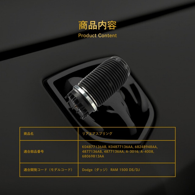 Dodge(ダッジ) RAM 1500 DS/DJ リアエアスプリング(68069813AA, 68248948AA)