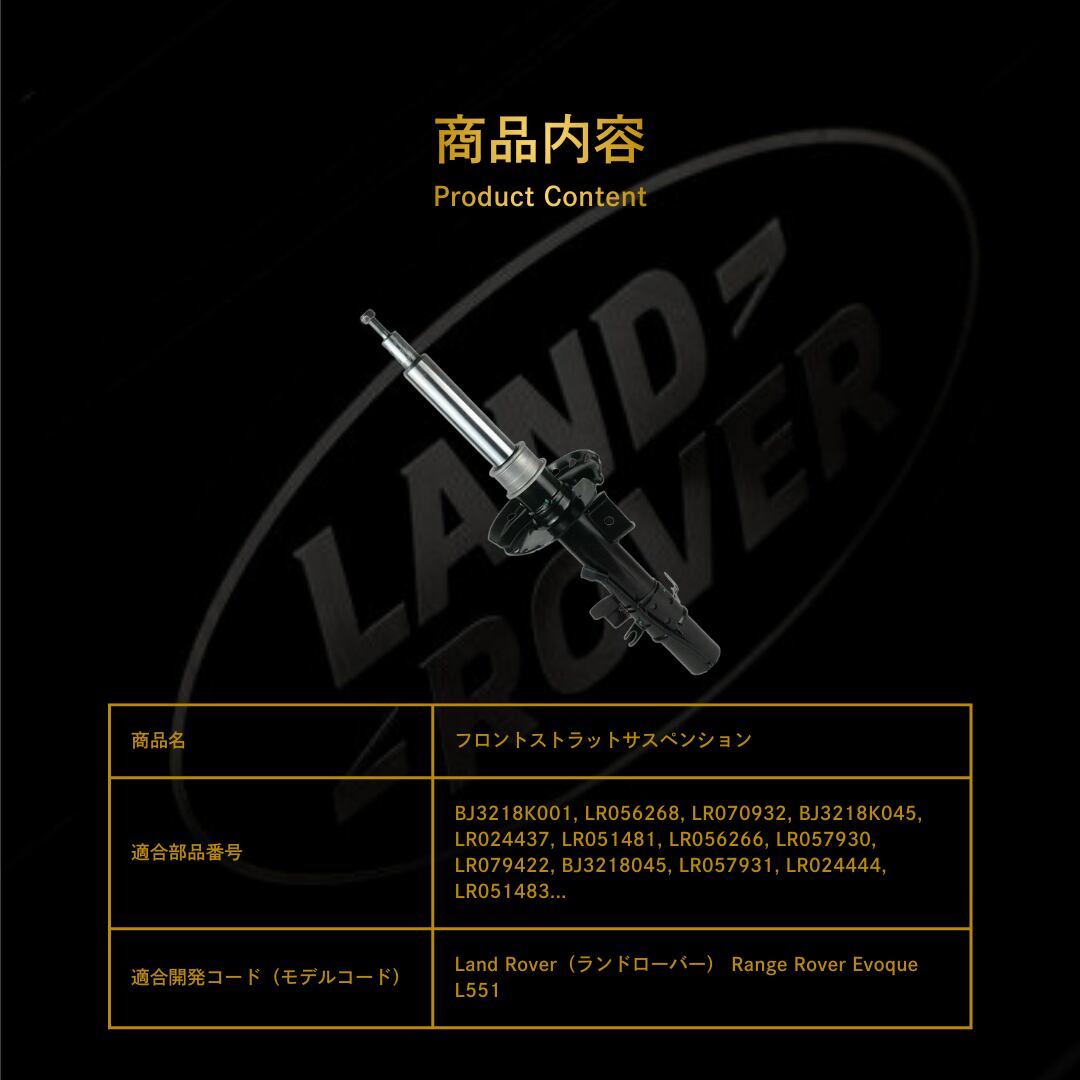 Land Rover(ランドローバー) Range Rover Evoque L551 フロントストラットサスペンション(BJ3218K001, LR056268, LR070932, BJ3218K045, LR024437, LR051481, LR056266, LR057930, LR079422, BJ3218045, LR057931, LR024444, LR051483)