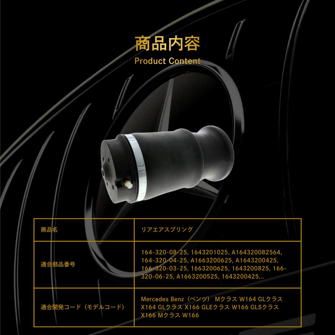 Mercedes Benz(ベンツ) Mクラス W164 GLクラス X164 GLクラス X166 GLEクラス W166 GLSクラス X166 Mクラス W166 リアエアスプリング(1643200825, 1643201025, A164320082564, 1643200425, A1663200625, A1643200425, 1663200325, 1663200625, A1663200525, 1663200525, 164320082564, A1643200925)