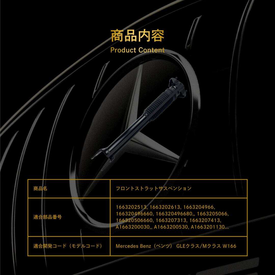Mercedes Benz(ベンツ) GLEクラス/Mクラス W166 フロントストラットサスペンション(1663202513, 1663202613, 1663204966, 166320496660, 166320496680, 1663205066, 166320506660, 1663207313, 1663207413, A1663200030, A1663200530, A1663201130, A1663201730, A1663201830, A1663202030)