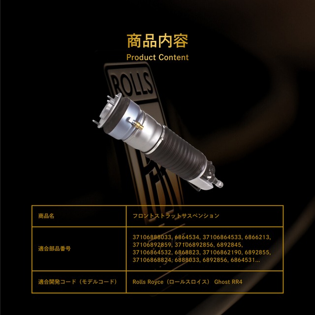 Rolls Royce(ロールスロイス) Ghost RR4 フロントストラットサスペンション(6862189, 37106879966, 37106892863, 6864532, 37106892845, 37106866214, 37106879965, 6868824, 37106892855, 6892864, 37106866213, 6888034, 37106864531, 6879966, 6892863, 37106868823, 6892860, 37106862551)