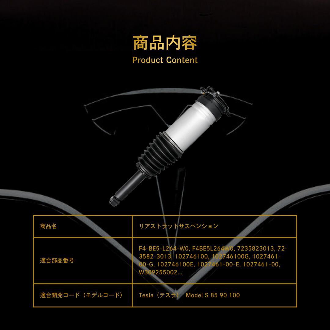 Tesla(テスラ) Model S 85 90 100 リアストラットサスペンション(F4BE5L264W0, 7235823013, 102746100G, 102746100E, W309255002)