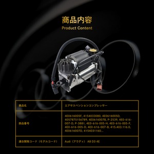 Audi(アウディ) A8 D3 4E エアサスペンションコンプレッサー(4E0616005H, 4E0616005F, 4E0616005D, 4E0616007B, 4E0616007D)