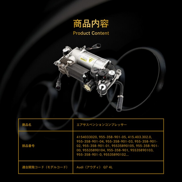 Audi(アウディ) Q7 4L エアサスペンションコンプレッサー(4154033020, 95535890105, 95535890104, 95535890103, 95535890102, 4154031130, 95535890101, 95535890100)
