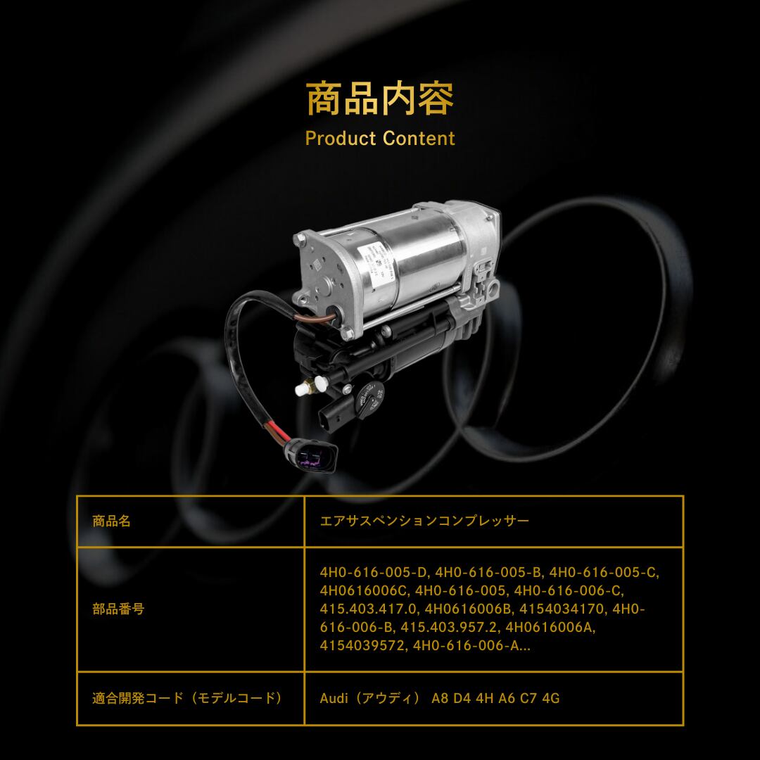 Audi(アウディ) A8 D4 4H A6 C7 4G エアサスペンションコンプレッサー(4H0616005C, 4H0616006C, 4H0616005, 4H0616006B, 4H0616006A, 4H0616006, 4H0616005D, 4H0616005A, 4H0616005B)