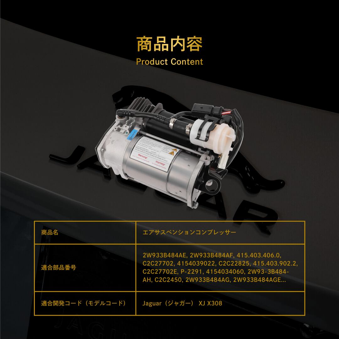 Jaguar(ジャガー) XJ X308 エアサスペンションコンプレッサー(C2C27702, C2C22825, C2C27702E, C2C2450)