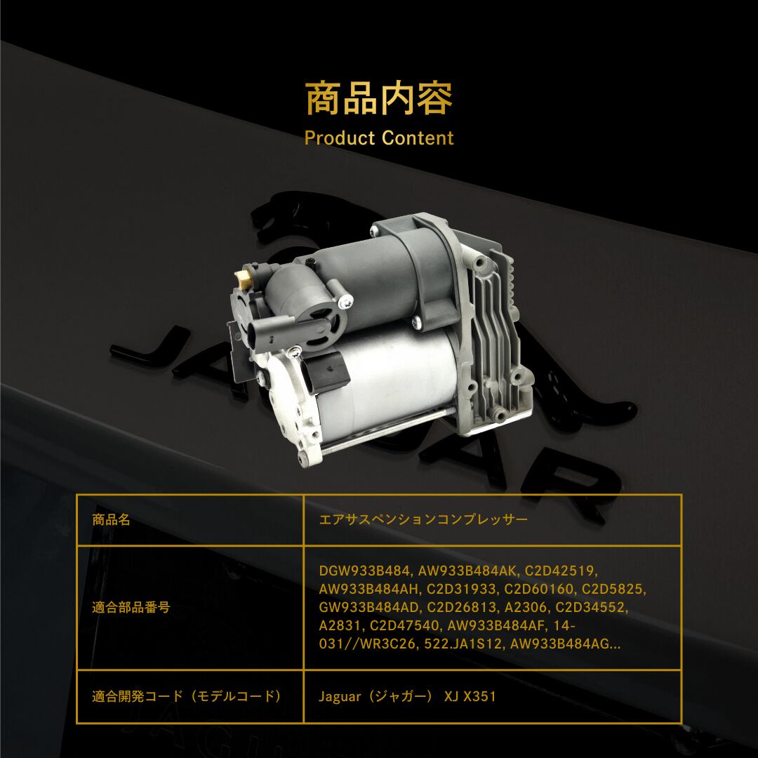 Jaguar(ジャガー) XJ X351 エアサスペンションコンプレッサー(AW933B484AG, AW933B484JA, AW933B484AJ, AW933B484AK, C2D42519, AW933B484AH, C2D31933, C2D60160, C2D5825, GW933B484AD, C2D26813, C2D34552, C2D47540, AW933B484AF)