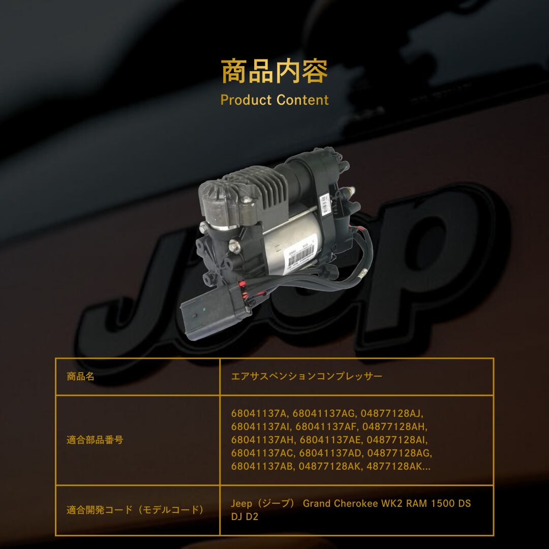 Jeep(ジープ) Grand Cherokee WK2 RAM 1500 DS DJ D2 エアサスペンションコンプレッサー(68204730AD, 04877128AB, 68204730AI, 68204730AC, 04877128AD, 68204730AH, 68204730AB, 04877128AE, 68041137AG, 04877128AJ, 68041137AI, 68041137AF, 04877128AH, 68041137AH, 68041137AE)