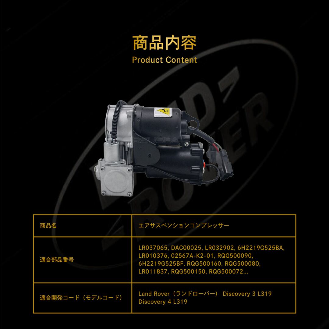 Land Rover(ランドローバー) Discovery 3 L319 Discovery 4 L319 エアサスペンションコンプレッサー(LR037065, LR032902, LR010376, RQG500090, RQG500160, RQG500080, LR011837, RQG500150, RQG500072, RQG500130, RQG500071, LR044360, RQG500070, LR041776, RQG500019, LR038118, RQG500015)