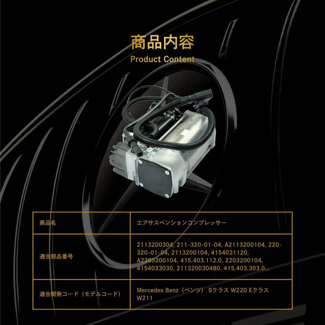 Mercedes Benz(ベンツ) Sクラス W220 Eクラス W211 エアサスペンションコンプレッサー(211320030480, A211320030480, A2193200004, 2193200004, A2113200304, 2113200304, 2113200104, A2113200104, 2203200104, A2203200104)