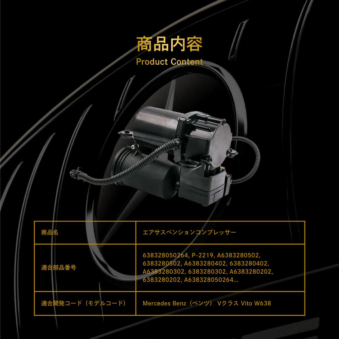 Mercedes Benz(ベンツ) Vクラス Vito W638 エアサスペンションコンプレッサー(638328050264, A6383280502, 6383280502, A6383280402, 6383280402, A6383280302, 6383280302, A6383280202, 6383280202, A638328050264)
