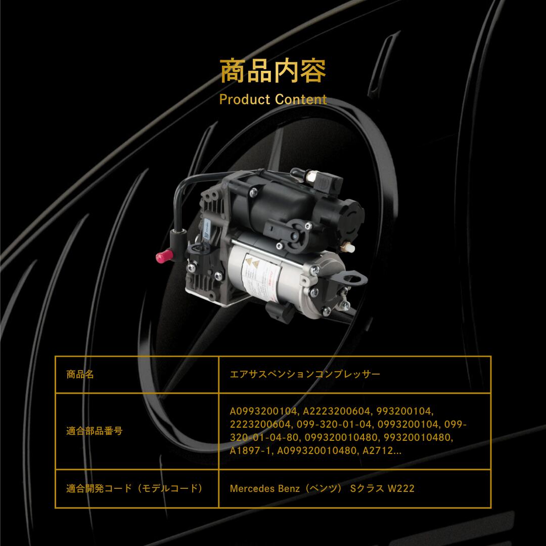 Mercedes Benz(ベンツ) Sクラス W222 エアサスペンションコンプレッサー(A099320010480, 2223200604, A222320060480, 222320060480, A0993200104, A2223200604, 99320010480)