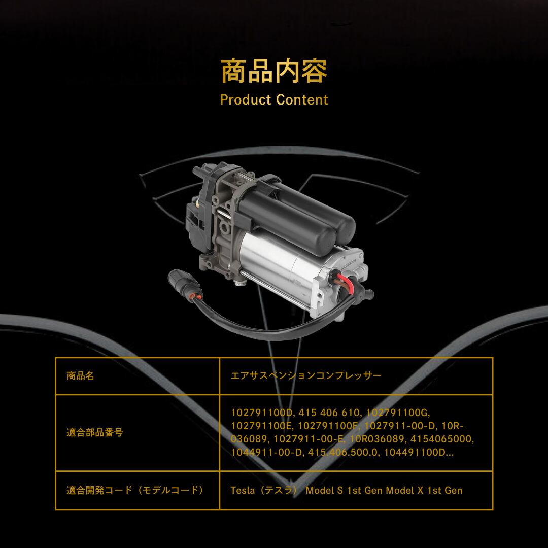 Tesla(テスラ) Model S 1st Gen Model X 1st Gen エアサスペンションコンプレッサー(104491100D, 102791100H, 102791100D, 102791100G, 102791100E, 102791100F)