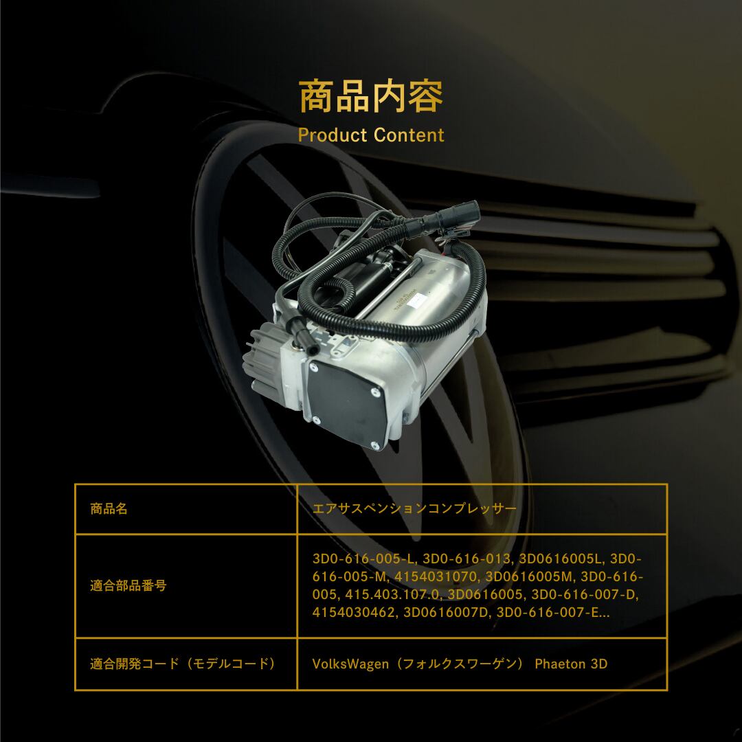 VolksWagen(フォルクスワーゲン) Phaeton 3D エアサスペンションコンプレッサー(3D0616005H, 3D0616013, 3D0616005K, 3D0616013C, 3D0616005L, 3D0616005M, 3D0616005, 3D0616007D, 3D0616007E, 3D0616007, 3D061013C, 3D0616005Q, 3D061013B, 3D0616013B, 3D061013, 3D0616005P, 3D0616013A)