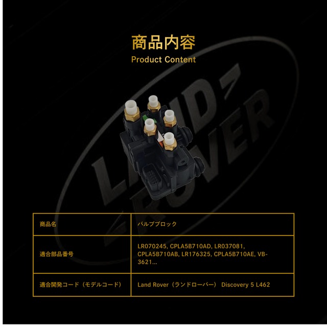 Land Rover(ランドローバー) Discovery 5 L462 バルブブロック(LR037081, LR176325, LR070245)